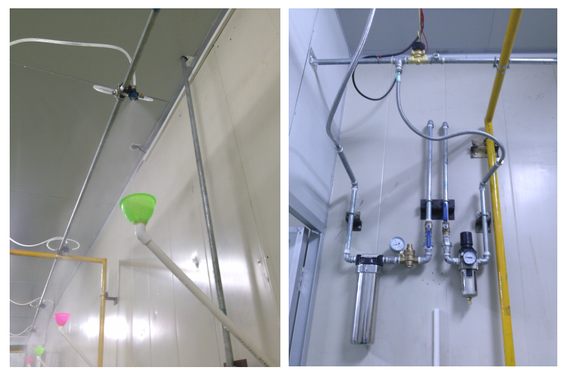 16 米長(zhǎng)的房間里面安裝霧化噴嘴6 個(gè),小房間安裝霧化噴嘴3 個(gè)。